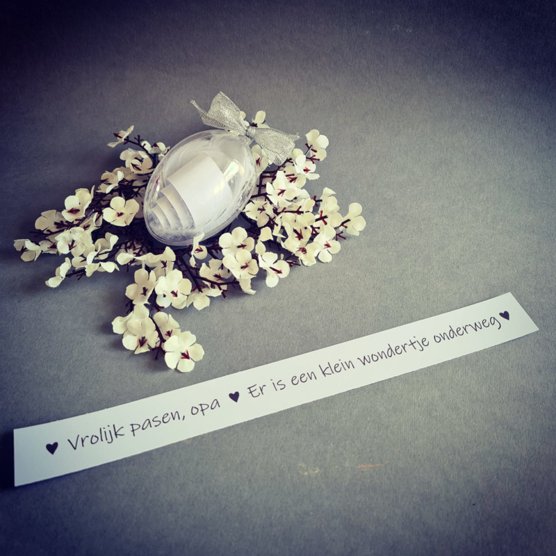 Geef met Pasen een paasei cadeau met daarin de prachtige boodschap "vrolijk pasen opa, er is een klein wondertje onderweg".